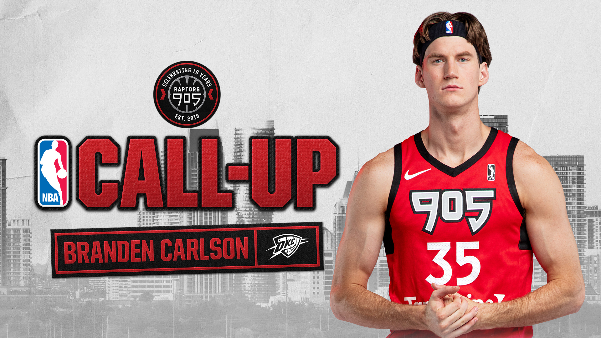 Raptors 905, the NBA G League affiliate of the Toronto Raptors, announced Saturday that center Branden Carlson has signed a standard NBA contract with the Oklahoma City Thunder.